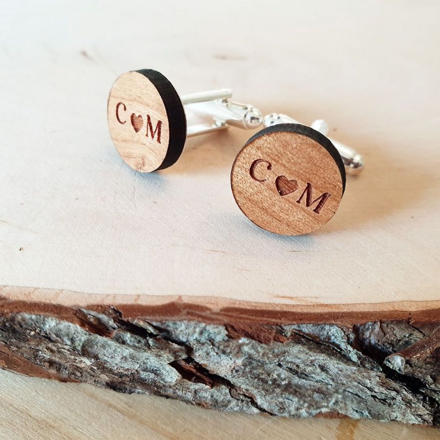 Paire de boutons de manchettes en bois personnalisé | Mariage | Coeur