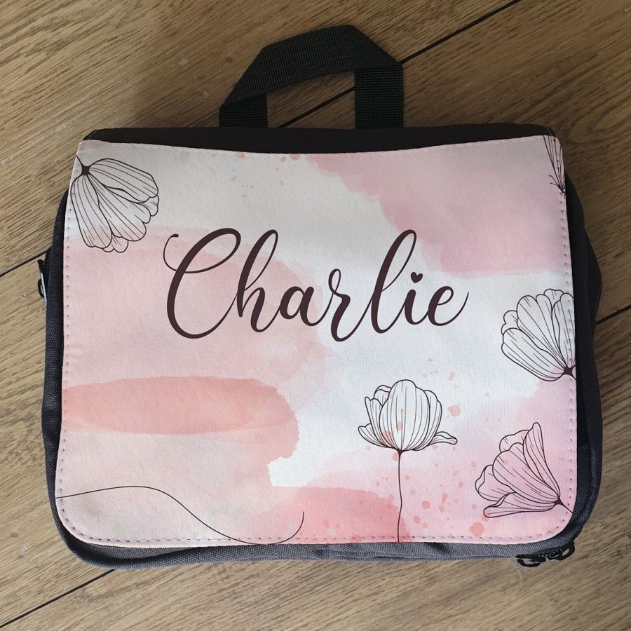 Grande trousse personnalisée modèle Fleurs pour ranger toutes les affaires de bébé lors de vos balades.