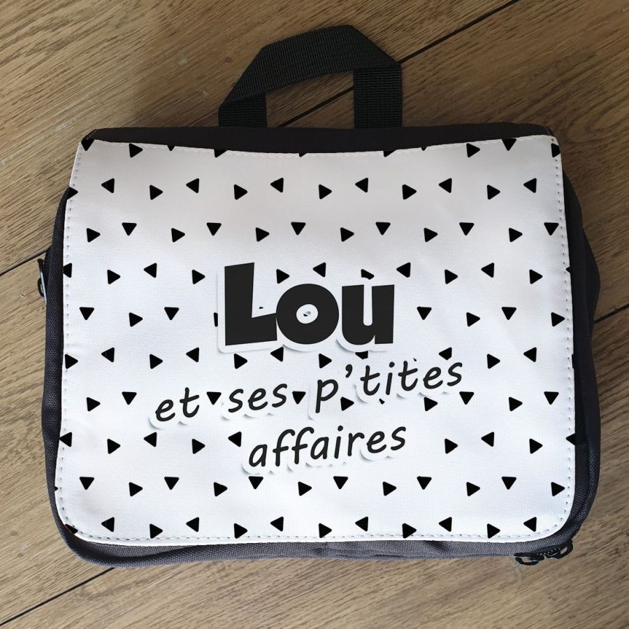 Grande trousse personnalisée modèle Noir & blanc pour ranger toutes les affaires de bébé lors de vos balades.