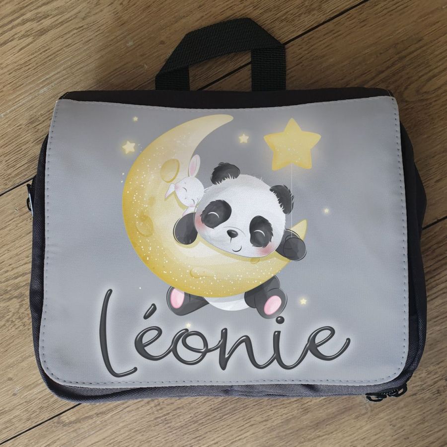 Grande trousse personnalisée modèle Panda sur la Lune pour ranger toutes les affaires de bébé lors de vos balades.