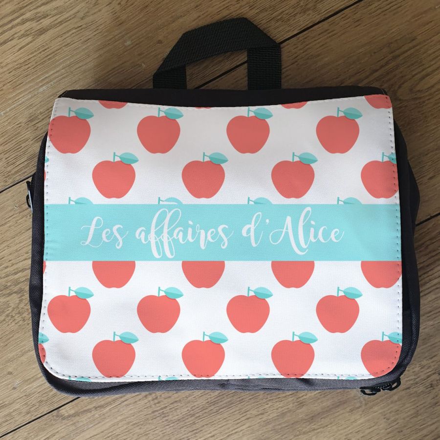 Grande trousse personnalisée modèle Pomme pour ranger toutes les affaires de bébé lors de vos balades.