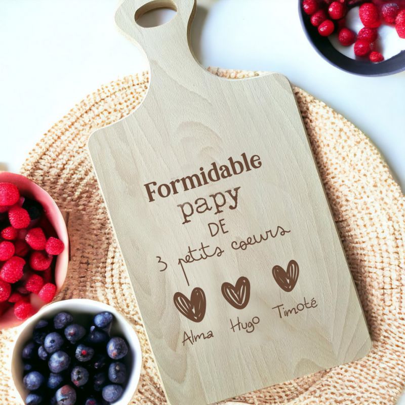 Pour la fête des Papy, offrez une planche à découper personnalisée.