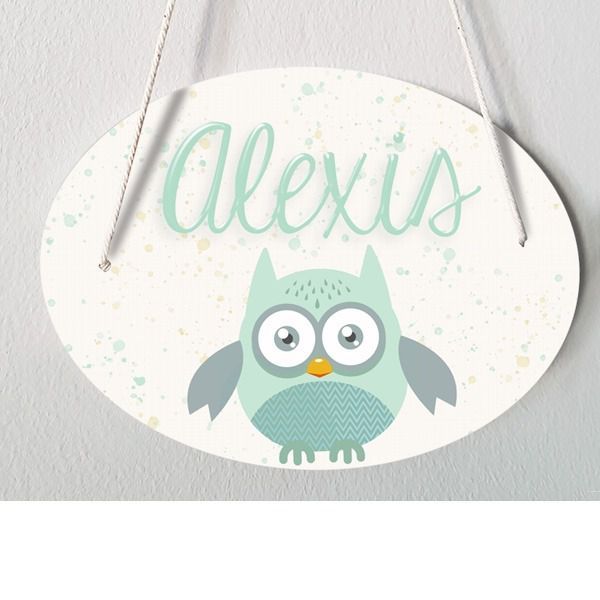 Plaque de porte chambre d'enfant personnalisable - modèle Alexis - chouette