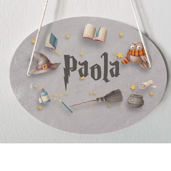 Plaque de porte chambre d'enfant personnalisable Sorcier