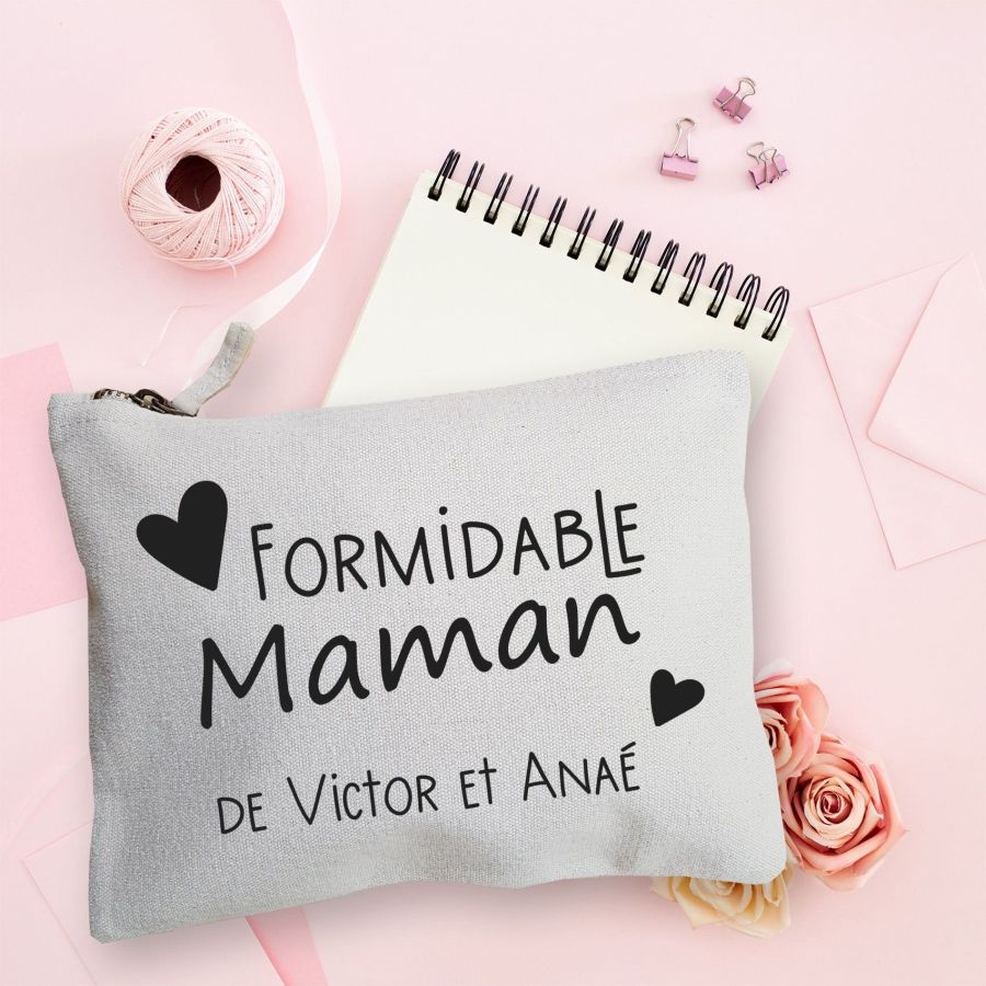 Grande pochette en coton "Formidable Maman" avec les prénoms enfants !