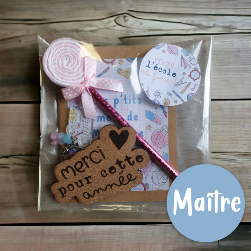 Pochette personnalisée et remplie de petits cadeaux pour la Nounou !