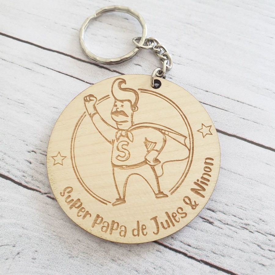 Pour un super Papa, offrez ce porte clé personnalisé en bois !
