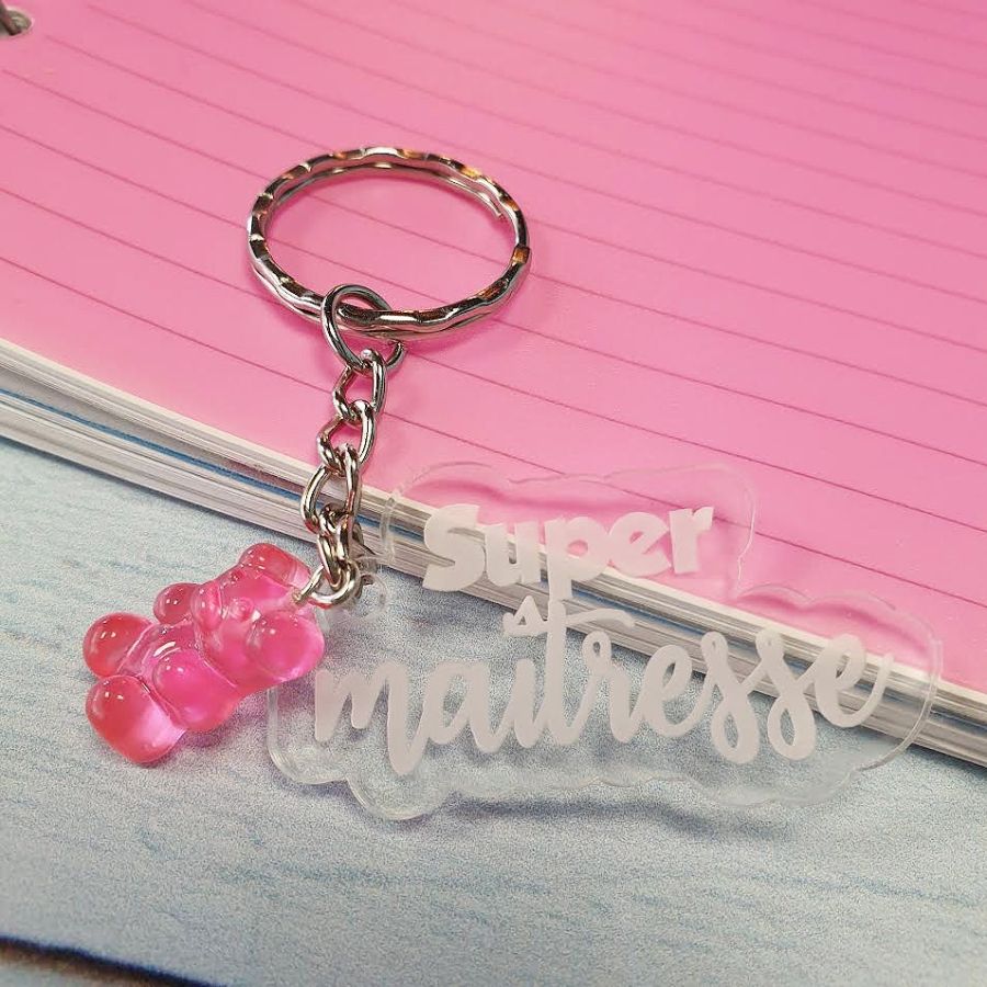 Porte clé gravé Super Maîtresse avec son ourson