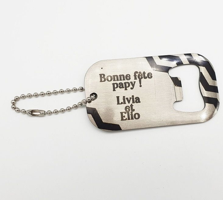Mini porte clés décapsuleur en inox personnalisable.