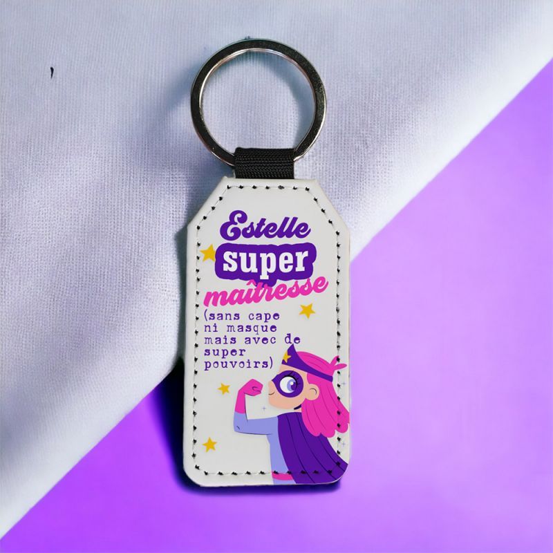 Porte clés simili cuir personnalisable - Super maîtresse/ atsem / AVS - comic BD