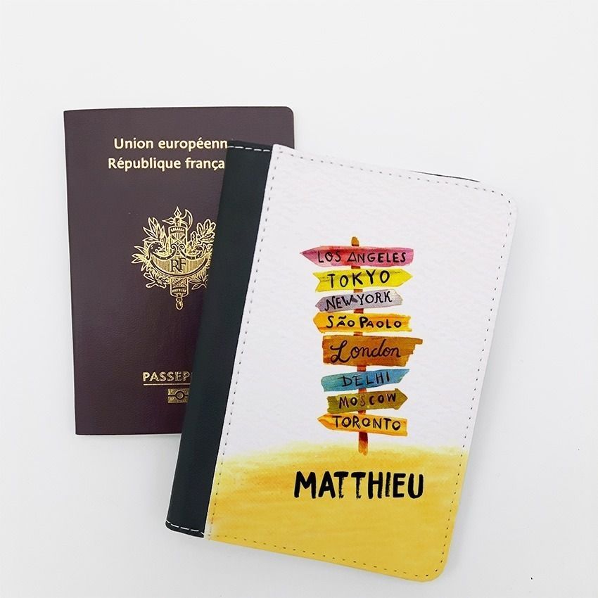 Protégez votre passeport ou celui de votre enfant avec cette housse rigide pour passeport, illustré et personnalisé avec le petit texte de votre choix.