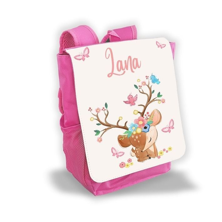 Sac à dos pour enfant personnalisé avec prénom modèle Daim fleuri