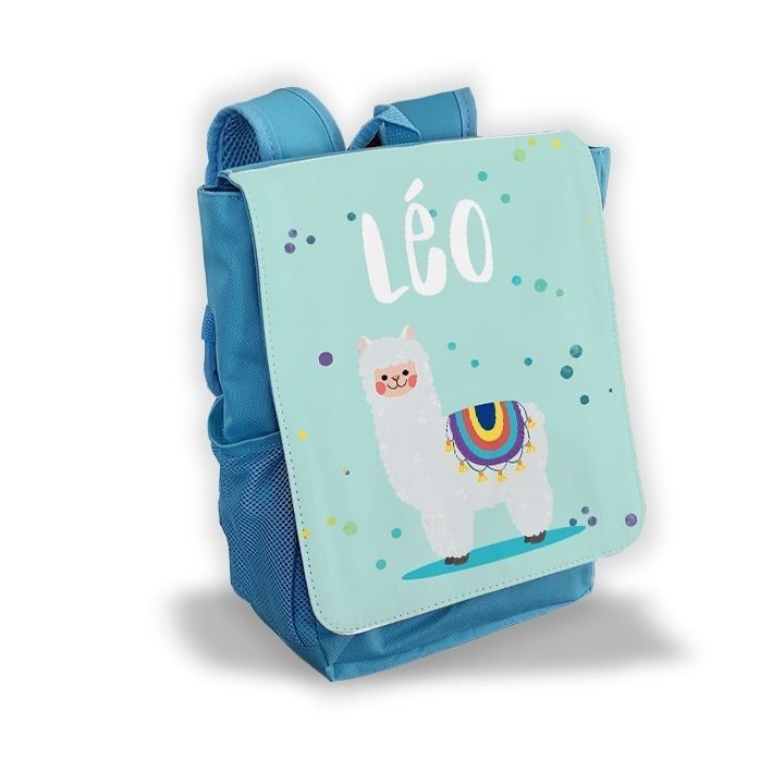 Sac à dos pour enfant personnalisé avec prénom modèle Lama bleu