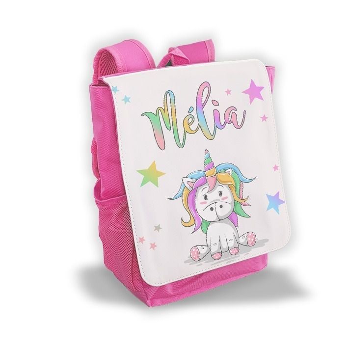 Sac à dos pour enfant personnalisé avec prénom modèle Licorne arc en ciel