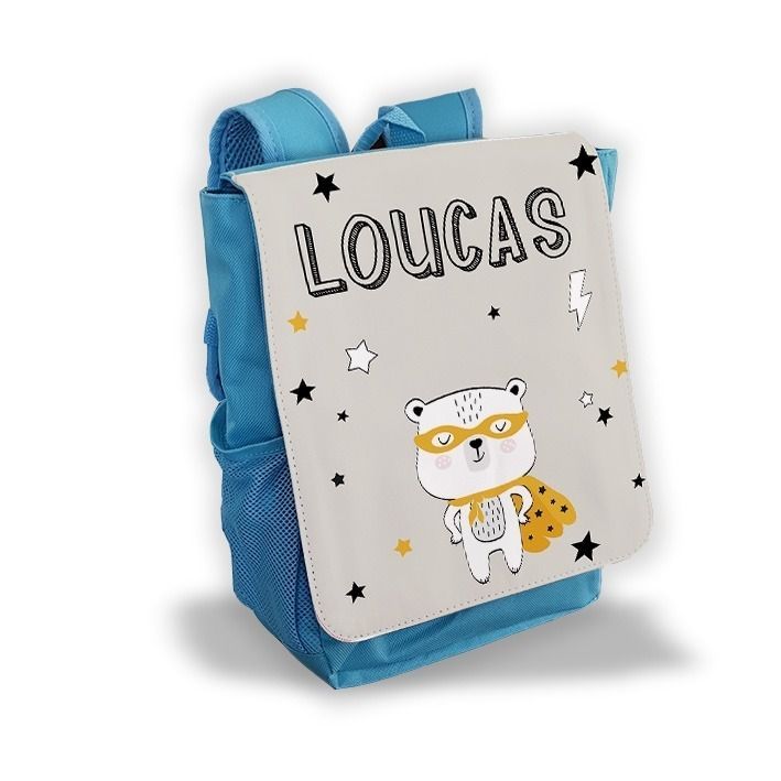 Sac à dos pour enfant personnalisé avec prénom modèle Ours Super Héros