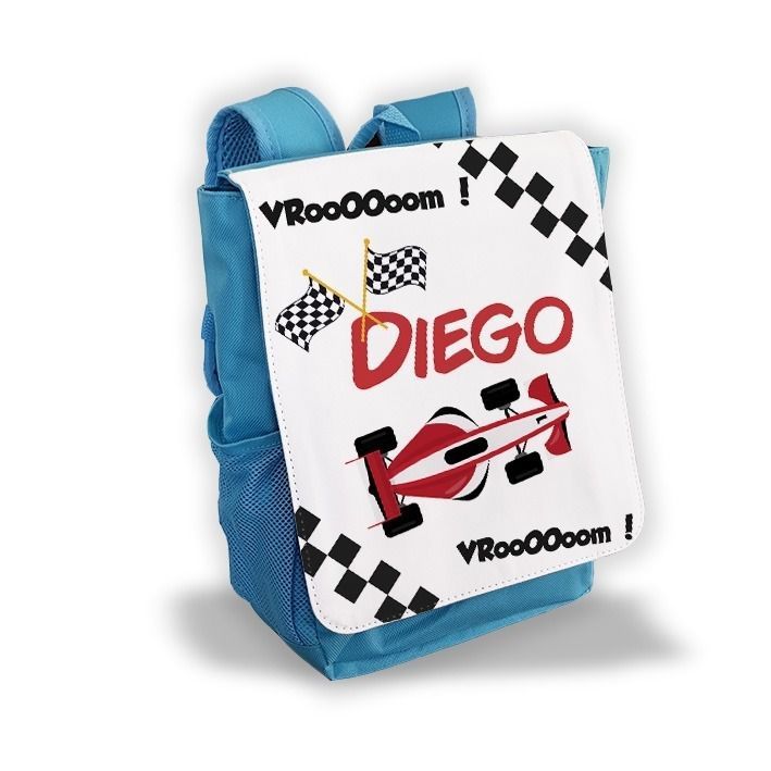Sac à dos pour enfant personnalisé avec prénom modèle Voiture de course