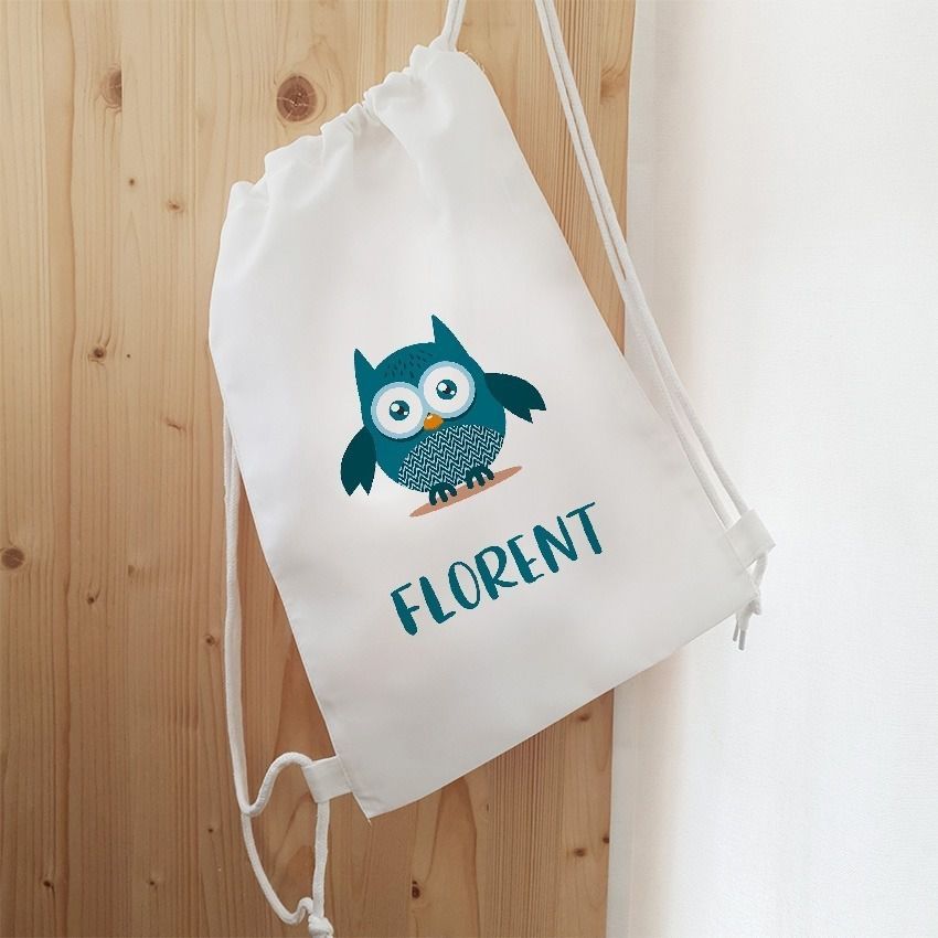 Sac de sport enfant personnalisable modèle Chouette bleue