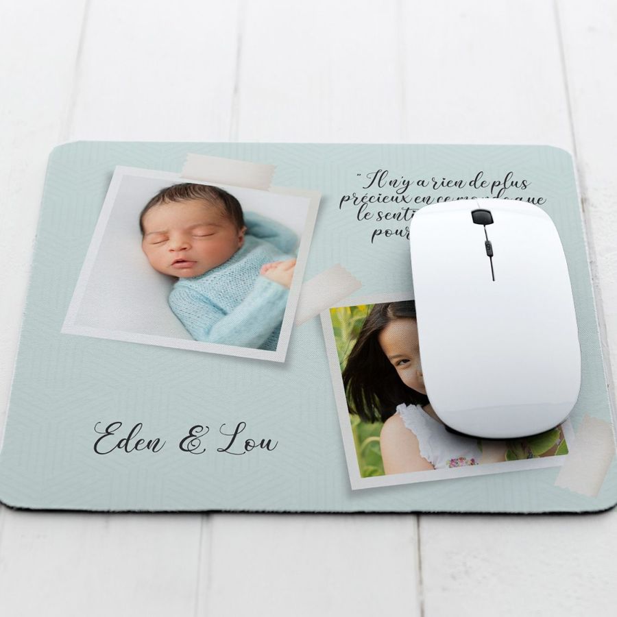 Un chouette tapis de souris personnalisé avec 2 photos et 2 zones de texte
