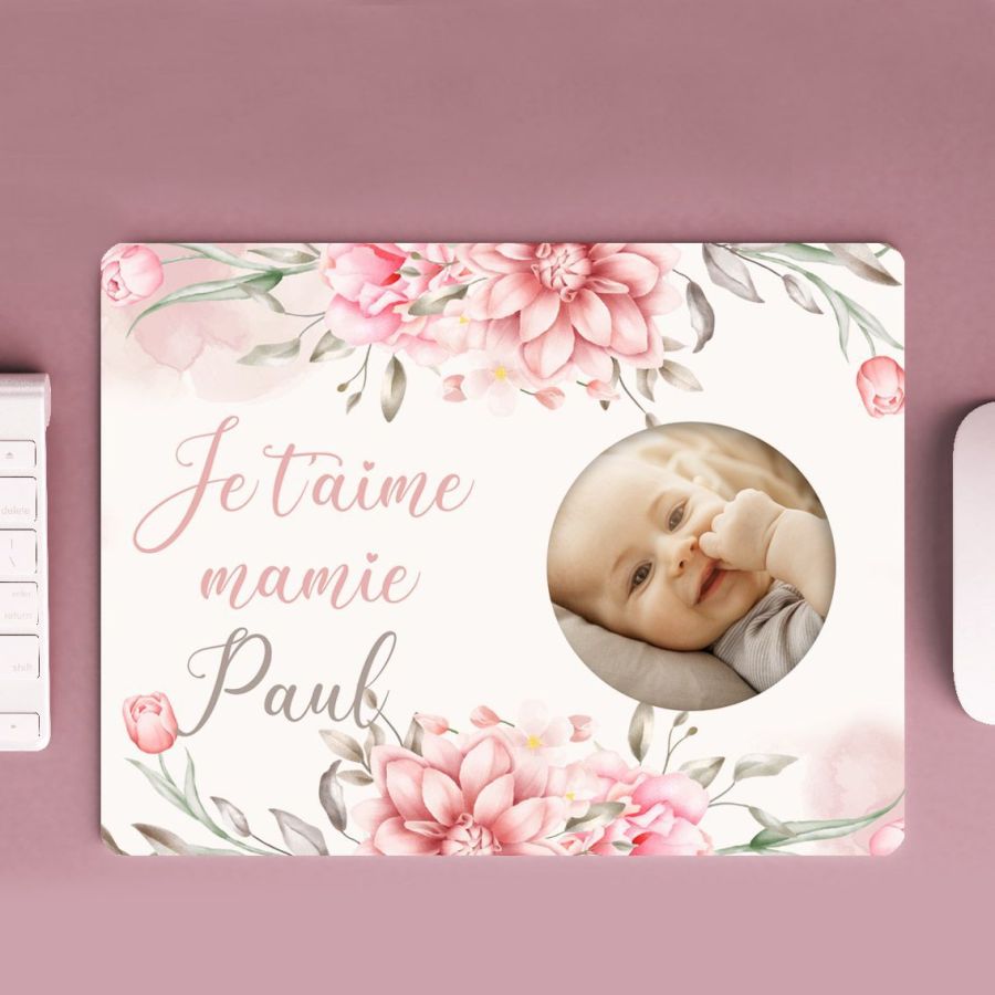 Tapis de souris personnalisé fleuri avec photo