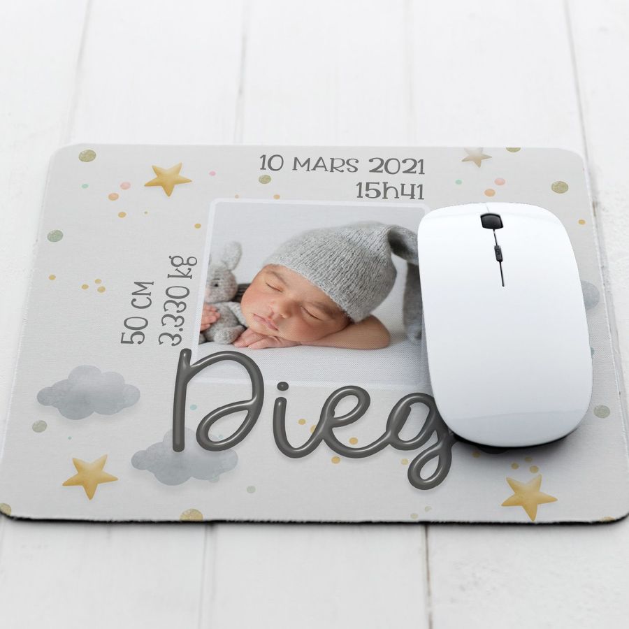 Un chouette tapis de souris personnalisé avec la photo et les infos de votre bébé !