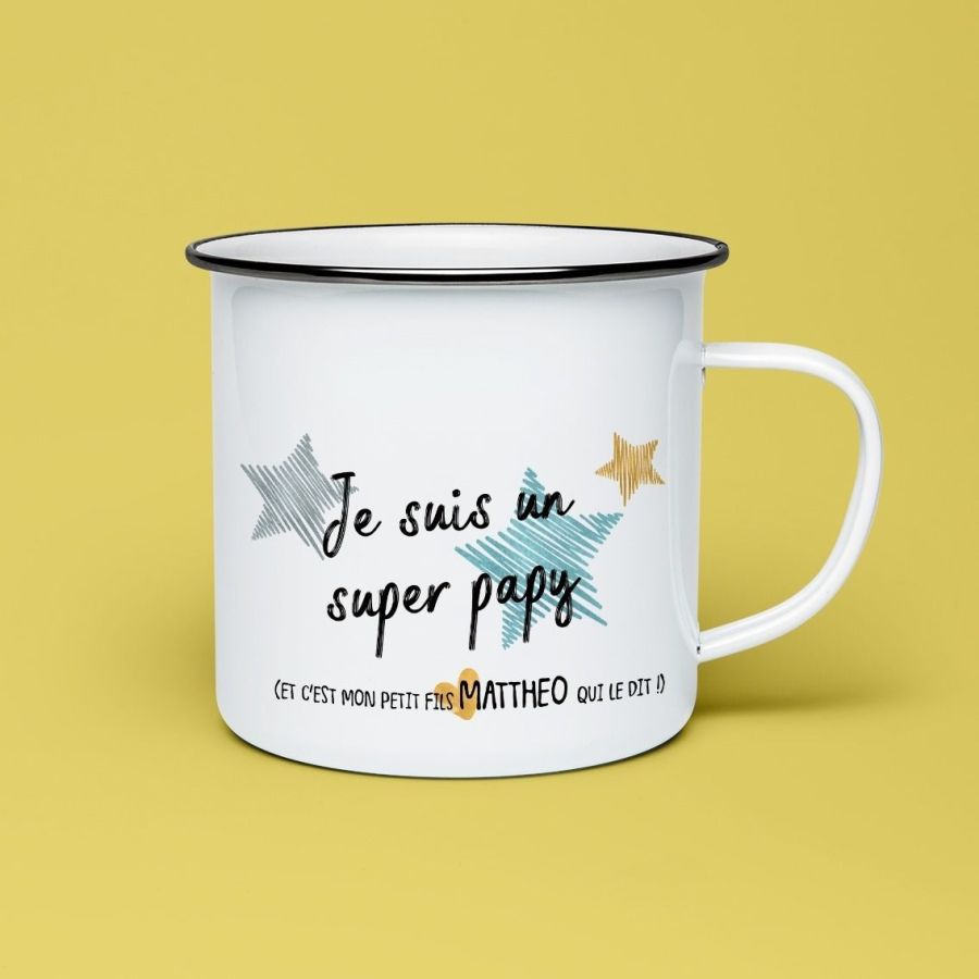 Tasse émaillée personnalisable Je suis un super papy