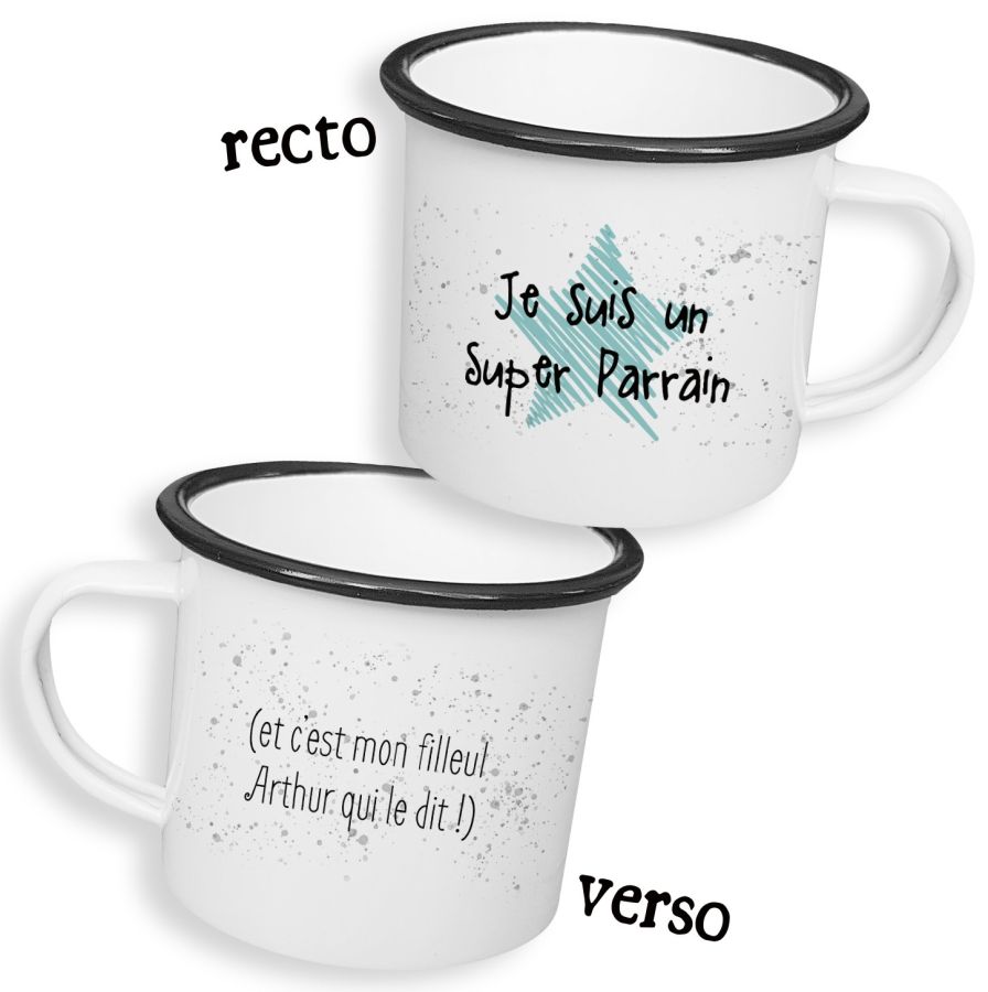 Tasse émaillée personnalisable recto/verso pour parrain