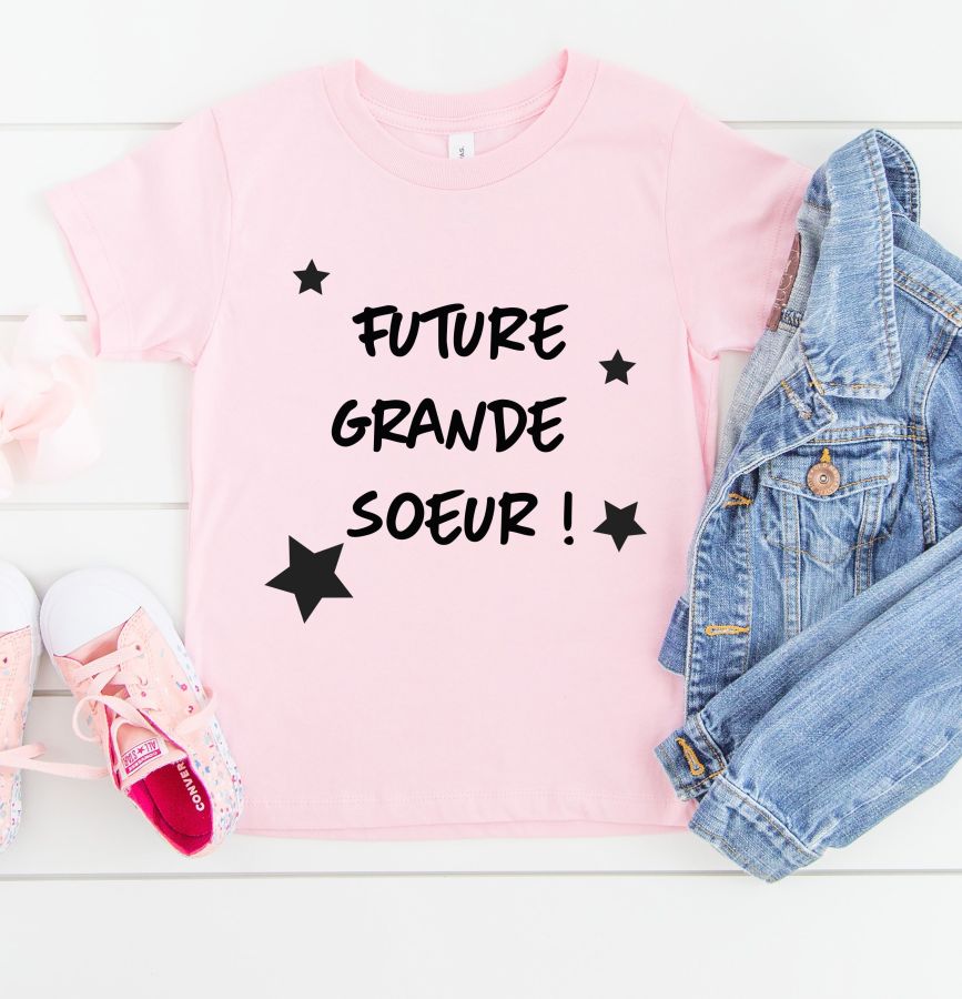 Tee shirt enfant personnalisable avec propre texte de 6 mots maximum. Les étoiles, précisez si vous ne le voulez pas entre parenthèses après votre phrase