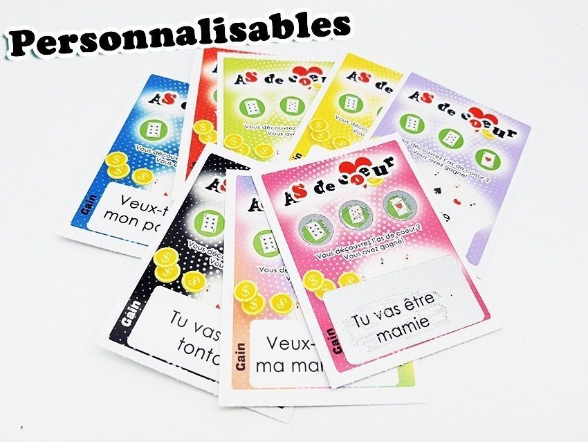 Ticket à gratter Jeu "As de coeur" personnalisée avec message de votre choix|annonce grossesse
