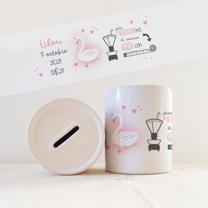 Tirelire en céramique personnalisée avec les informations sur la naissance de l'enfant pour un cadeau unique !