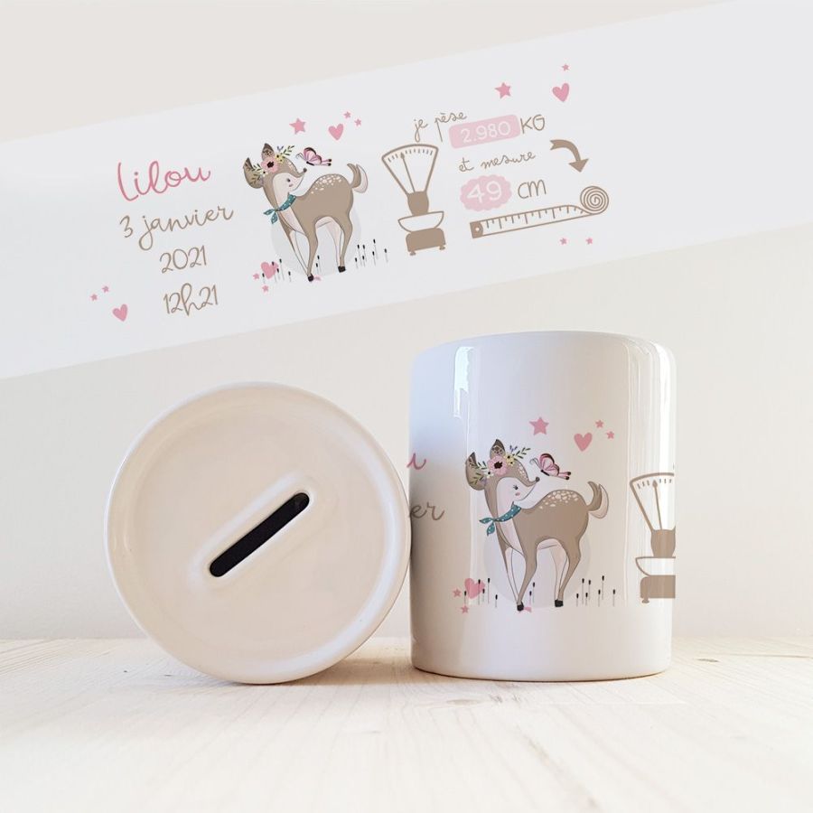 Tirelire en céramique personnalisée avec les informations sur la naissance de l'enfant pour un cadeau unique !