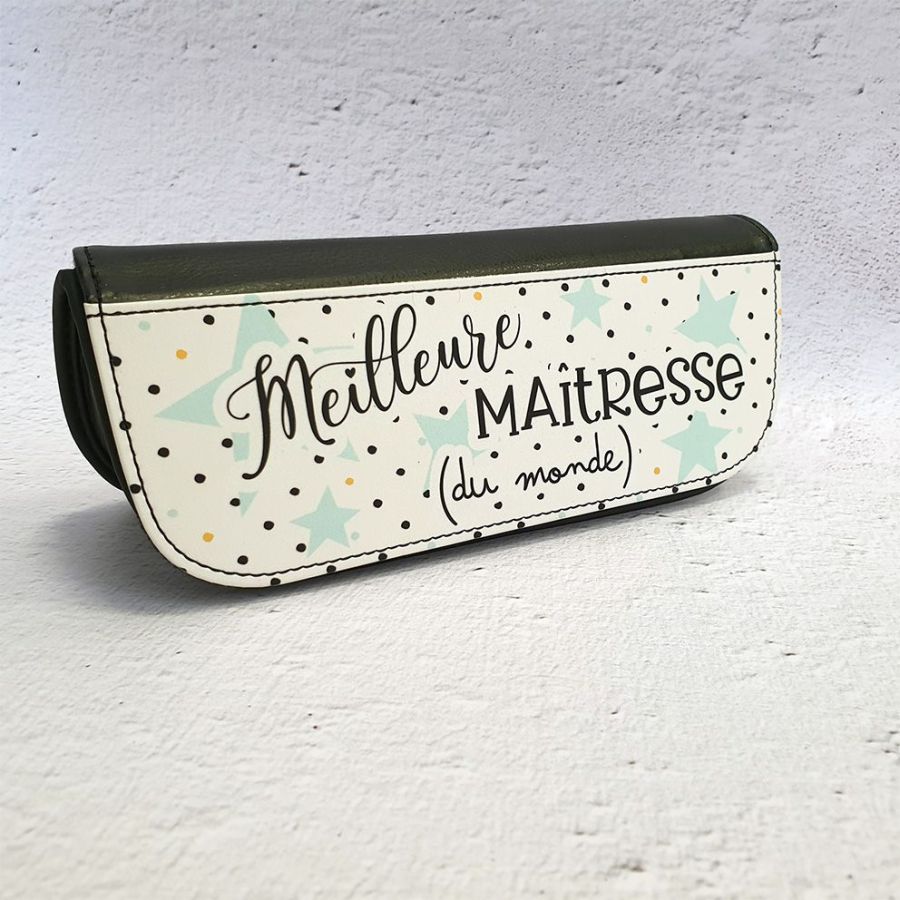 Trousse à crayons noire en simili cuir de haute qualité pour faire un cadeau original à la maitresse !